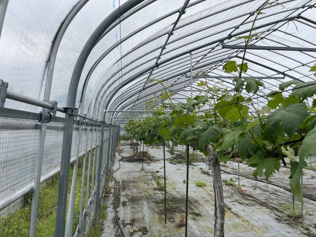 お客様のニーズに応えるべく、シャインマスカットをなんとかお盆に収穫できるように工夫が続きます。